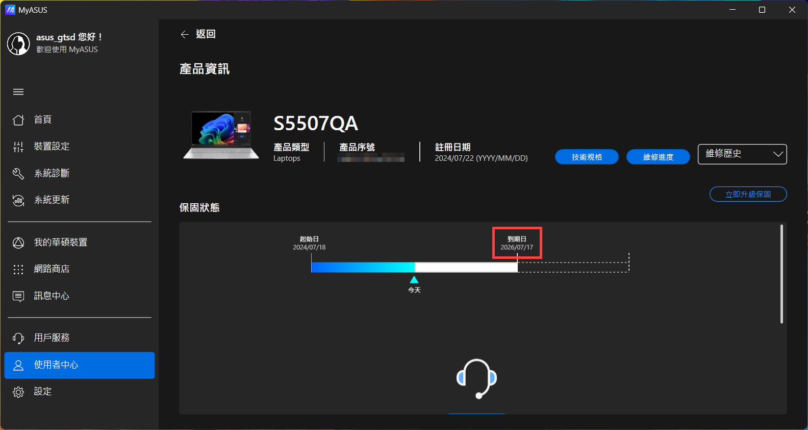 如何透過MyASUS查詢產品保固狀態