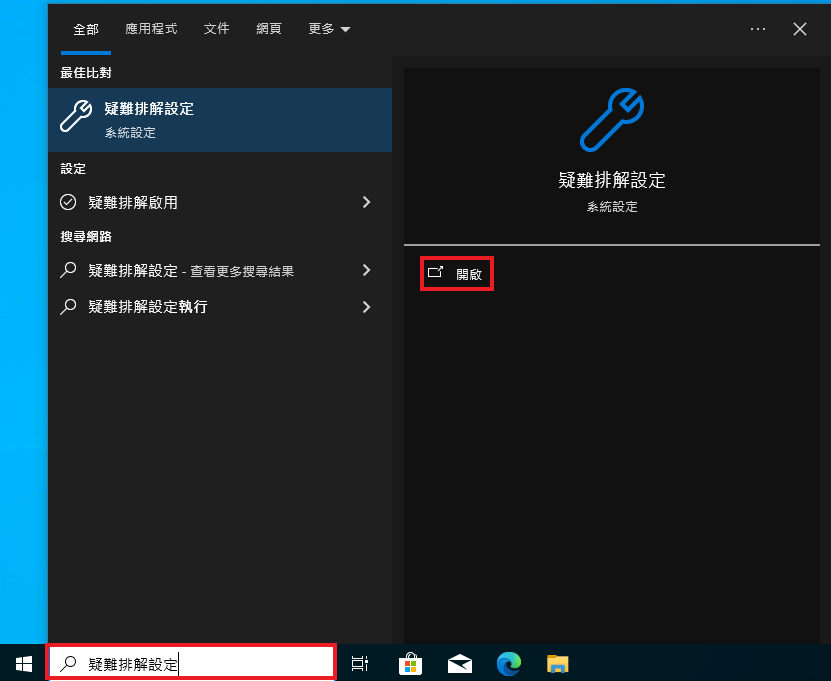 1. 在Windows搜索欄搜索[疑難排解設定]。