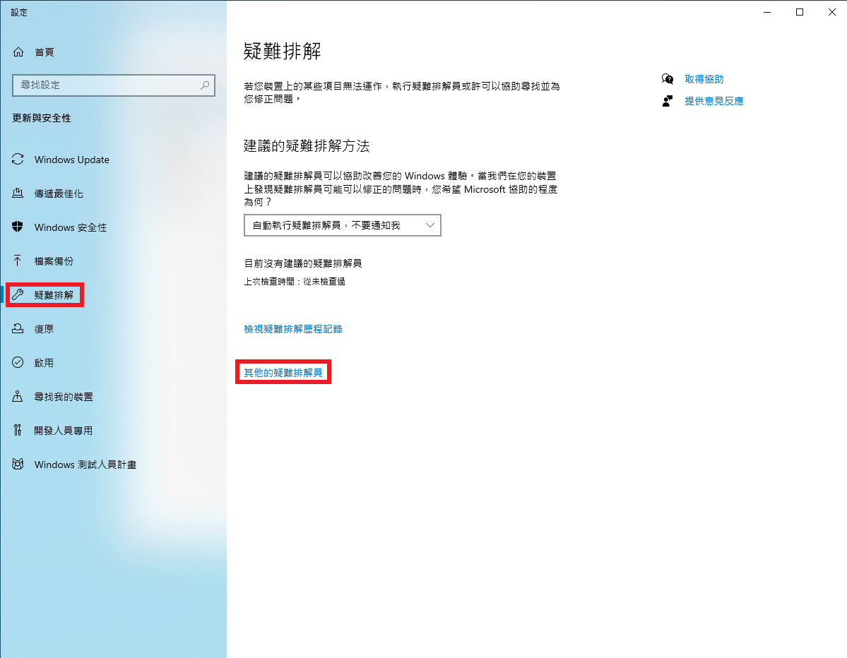 2. 進入疑難排解設定,點選[其他的疑難排解員]